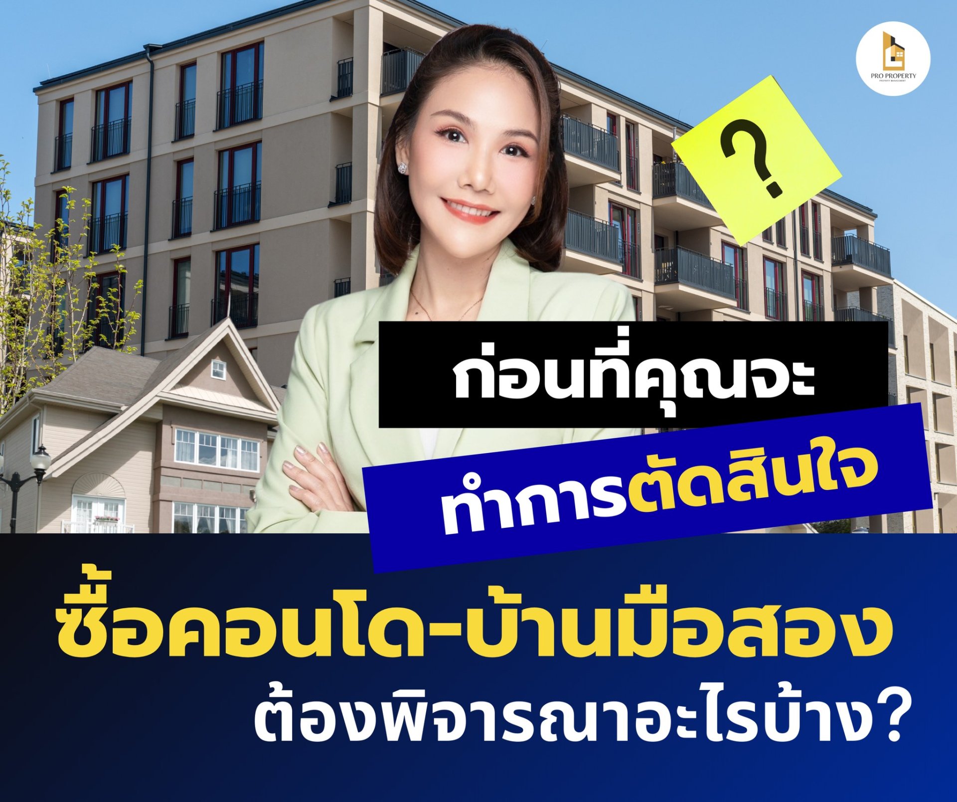 เป้าหมายในการมีบ้าน หรือ คอนโดเป็นของตัวเองนั้น อาจเป็นเรื่องที่ไกลเกินเอื้อมสำหรับหลาย ๆ คน ด้วยเหตุผลเพราะโครงการบ้านและคอนโดใหม่ ๆ ต่างก็มีราคาเพิ่มสูงขึ้น ยิ่งเป็นทำเลที่ดี ใกล้รถไฟฟ้า ติดถนนใหญ่ แวดล้อมด้วยสิ่งอำนวยความสะดวกครบครันด้วยแล้ว ก็ยิ่งมีมูลค่าสูง อย่าไรก็ตาม ความฝันที่อยากจะมีบ้านเป็นของตัวเองก็ยังเป็นไปได้อยู่ เพียงแค่เราหันมาดูบ้านหรือคอนโดมือสองที่ราคาย่อมเยากว่าแทน ซึ่งหากเลือกได้ดี ก็จะทำให้ได้ที่อยู่อาศัยที่มีคุณภาพไม่แพ้บ้านมือ 1 เลยทีเดียว โดยสิ่งสำคัญที่ควรต้องพิจารณาให้รอบคอบก่อนตัดสินใจซื้อบ้านหรือคอนโดมือสองนั้น มีดังต่อไปนี้