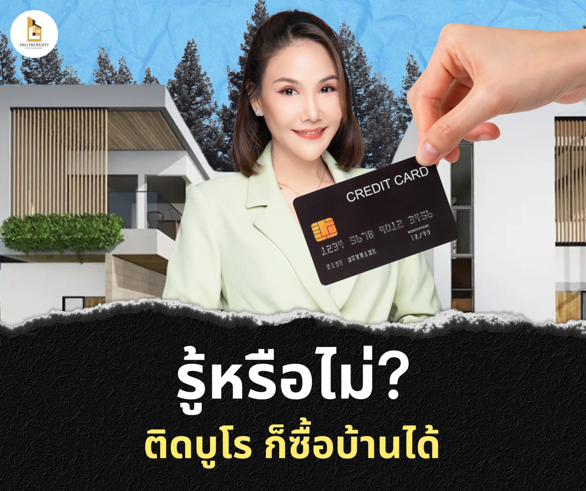 เครดิตบูโร หรือ สถานะทางการเงินของเราทุกคนนั้น ถือเป็นสิ่งสำคัญมากต่อการพิจารณาอนุมัติกู้ซื้อบ้านกับทางธนาคาร ดังนั้น การหันกลับมาให้ความสำคัญกับการแก้ไขและรักษาสถานะเครดิตบูโรให้ปกติ ไม่ติดบูโร ไม่ติดแบล็คลิสต์ จึงเป็นสิ่งเร่งด่วนที่ควรทำตั้งแต่วันนี้หากเราอยากซื้อบ้านเป็นของตัวเอง แม้ในความเป็นจริงจะยังมีแนวทางอื่น ๆ ที่ทำให้เรามีโอกาสซื้อบ้านเป็นของตัวเองได้แม้จะติดบูโร ด้วยการขอกู้ร่วม การใช้บริการซื้อบ้านกับบริษัทนายหน้า และการซื้อบ้านในโครงการบ้านล้านหลัง แต่สุดท้ายแล้วหากเราไม่สามารถปรับพฤติกรรมการใช้จ่าย เปลี่ยนนิสัยในการออม การใช้เงินของเราให้ดีขึ้นได้แล้ว โอกาสที่จะผ่อนชำระไม่ไหวจนเกิดปัญหาภายหลังก็จะยังคงเกิดขึ้นได้ ซึ่งแย่ที่สุดเลยก็คือเราอาจจะต้องเสียบ้านที่ซื้อมาไปในที่สุด หากไม่สามารถผ่อนชำระค่างวดได้ตามสัญญา