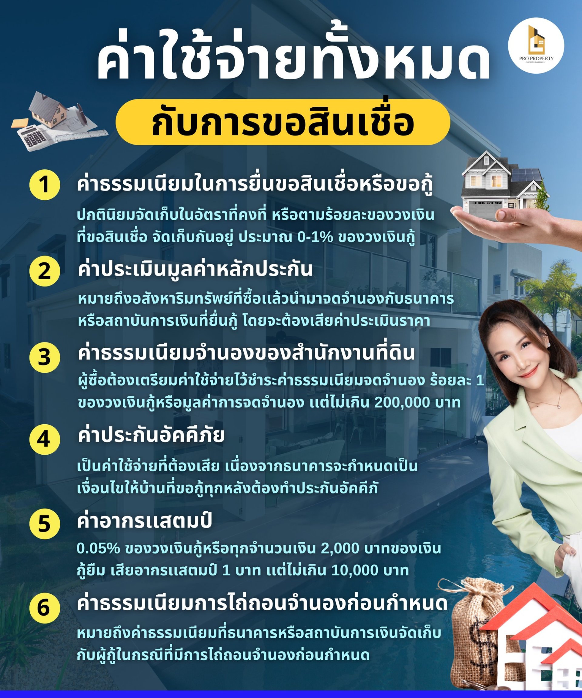 The appraisal fee usually depends on the property's value and the loan amount requested. If the collateral or loan amount is high, the appraisal fee will also be high, according to the criteria set by each bank or financial institution. The appraisal fee alone averages around 1,500-2,500 baht, or according to the criteria set by each bank and financial institution, which will vary.