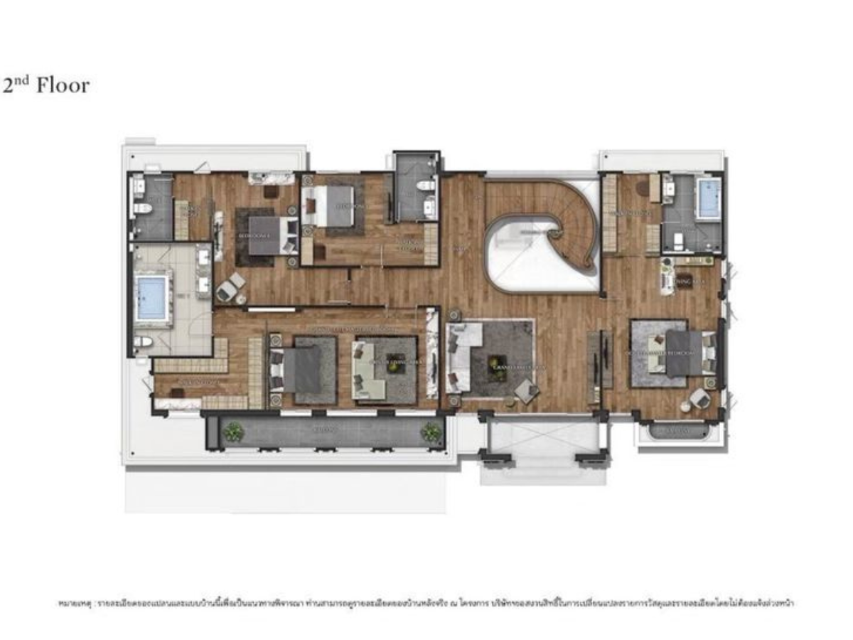- 5 ห้องนอน (2 ห้องนอนมาสเตอร์ มีอ่างจากุชชี่) 6 ห้องน้ำ